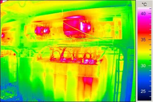 Поверхностная проверка работы охладительной системы шкафа распределения может быть проведена при помощи инфракрасной термографии. Температуру на поверхности компонентов, которые установлены в шкафу распределения, измеряют инфракрасной камерой. Если камера показывает участки с серьёзным повышением температуры, иначе называемые «горячими точками», то это говорит о том, что эти участки недостаточно обеспечены охлаждённым воздухом.