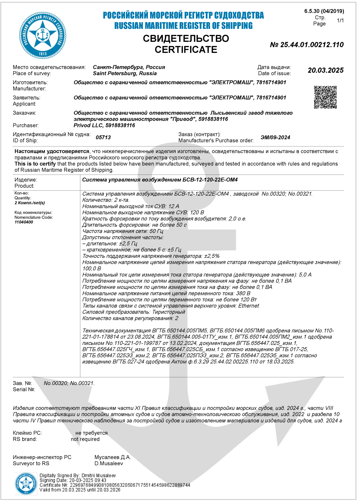 Компания ООО «ЭЛЕКТРОМАШ» в рамках проекта строительства и оснащения атомного ледокола разработала и реализовала проект Системы управления возбуждением БСВ-12-120-22Е-ОМ4. Система сконструирована на базе электротехнических шкафов IPEX. В рамках договора ООО «Овертайм» поставило 4 напольных шкафа размером 800х600х1800 с комплектующими. Системы управления возбуждением успешно прошла испытания и получила свидетельство Российского морского регистра судоходства, которое подтверждает, что данное изделие соответствует требованиям Правил классификации и постройки морских судов, Правилам классификации и постройки атомных судов и судов атомно-технологического обслуживания, а также Правилам технического наблюдения за постройкой судов и изготовлением материалов и изделий для судов.