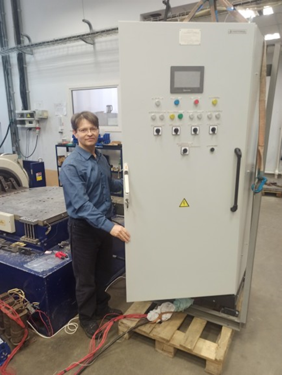 Менеджер по продажам ООО «Овертайм» Александр Клабуков на испытаниях Системы управления возбуждением БСВ-12-120-22Е-ОМ4, сконструированной на основе корпусов IPEX